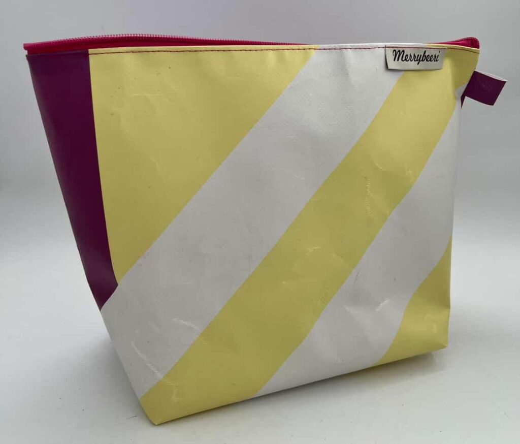 Was andere wegwerfen, wird bei Merrybeeri zu etwas ganz Besonderem. Aus vermeintlich kaputtem oder unbrauchbarem Material entstehen liebevoll gefertigte Upcycling-Unikate, die Geschichten erzählen. Alte Jeans verwandeln sich in wunderschöne Handtaschen, aus farbigen Schwimmflügeln entstehen Bikini-Bags oder Etuis, und robuste Blachen erleben ihr Comeback als praktische Necessaires oder stilvolle Einkaufstaschen.