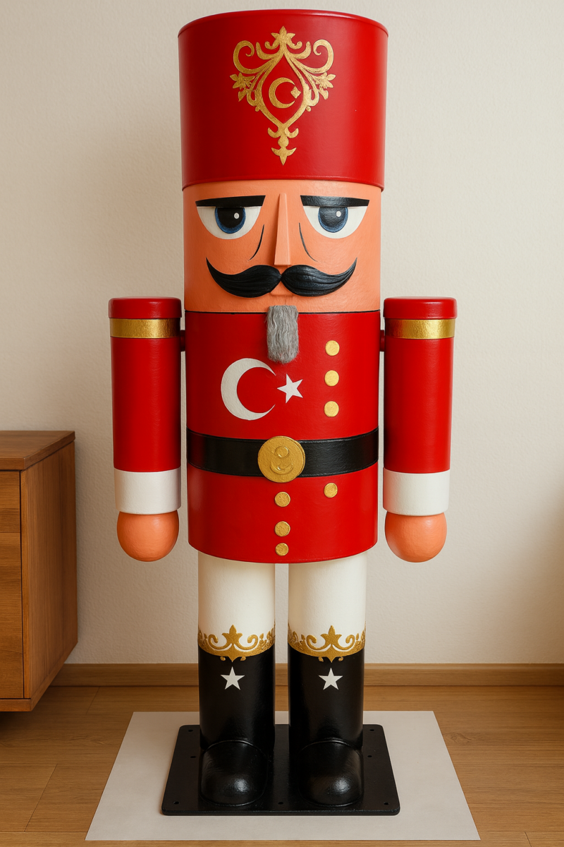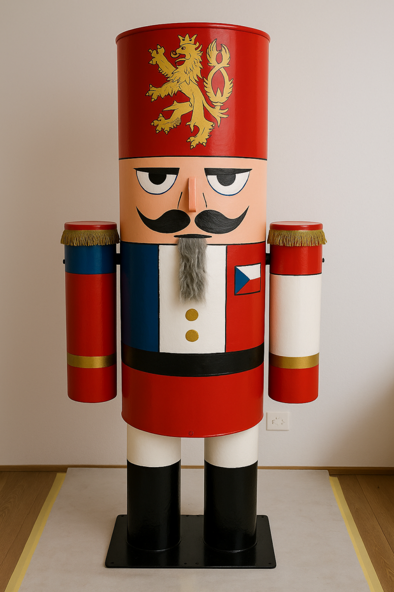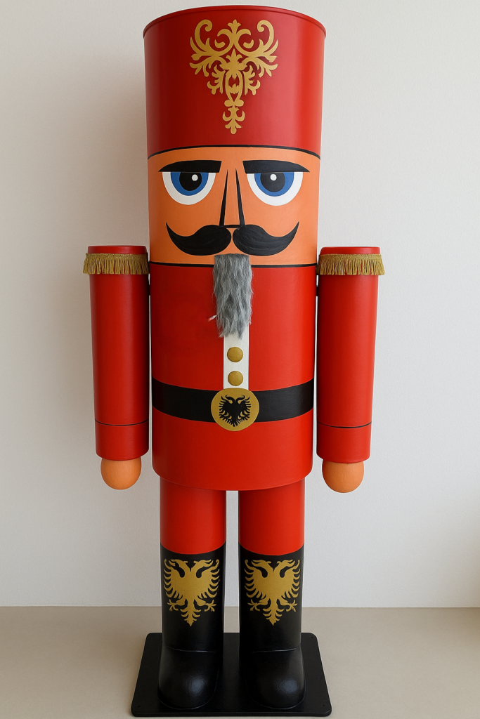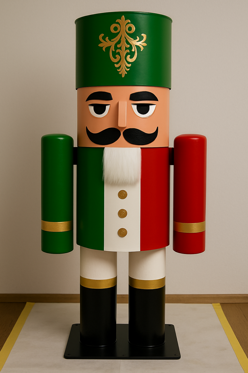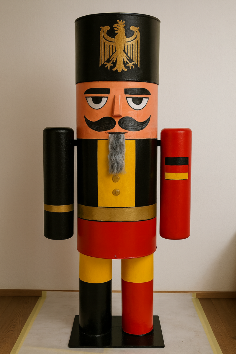Einen 1.9 Meter grossen Nussknacker, modern interpretiert, aus Metall gefertigt, wetterfest, zerlegbar und absolut beeindruckend.